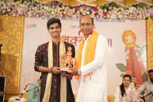 The programme featured a captivating performance by renowned young classical vocalist Rajyog Dhuri, who mesmerised the audience with a beautiful प्रस्तुती of Abhang and Natya Sangeet, creating a spiritually uplifting atmosphere.